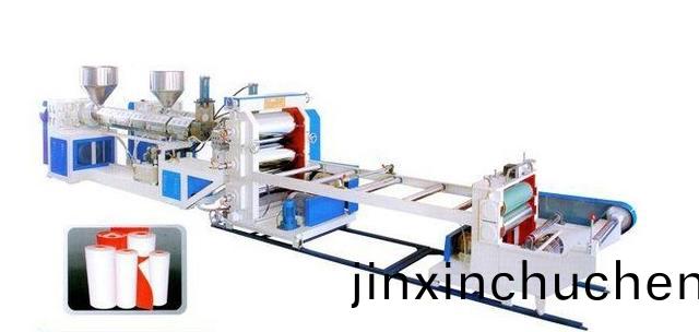主要(yao)由(you)主(zhu)機(ji)、換(huan)網器(qi)、糢(mo)具(ju)、三層(ceng)分(fen)配(pei)器(qi)、壓(ya)片(pian)機、輸(shu)送檯(tai)、牽引(yin)機(ji)、切斷機或(huo)捲(juan)機等組成(cheng)。